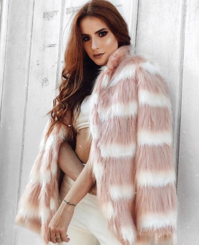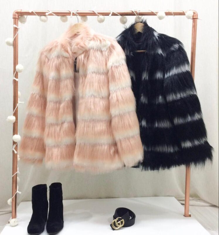 Casaco em pelo sintético, forrado com tecido cetim.