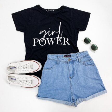 T-shirt girl power preto