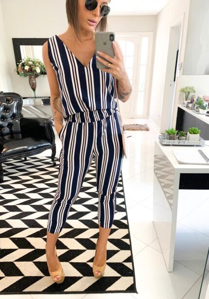 Conjunto calça e regata listras azul