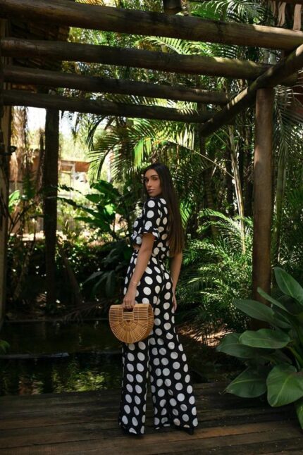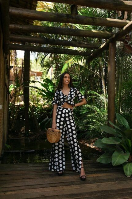 Conjunto calça e cropped poá preto