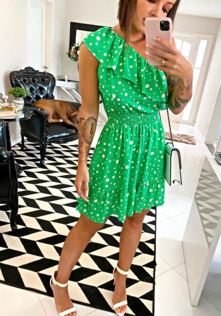 Vestido curto verde poá