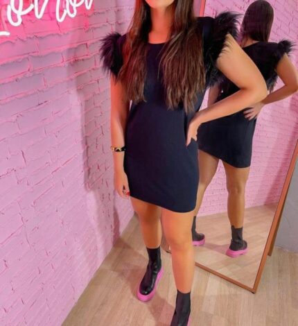 Vestido tee com pelo fake
