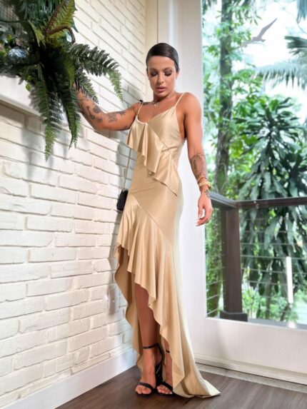 Vestido babados Monique aréia