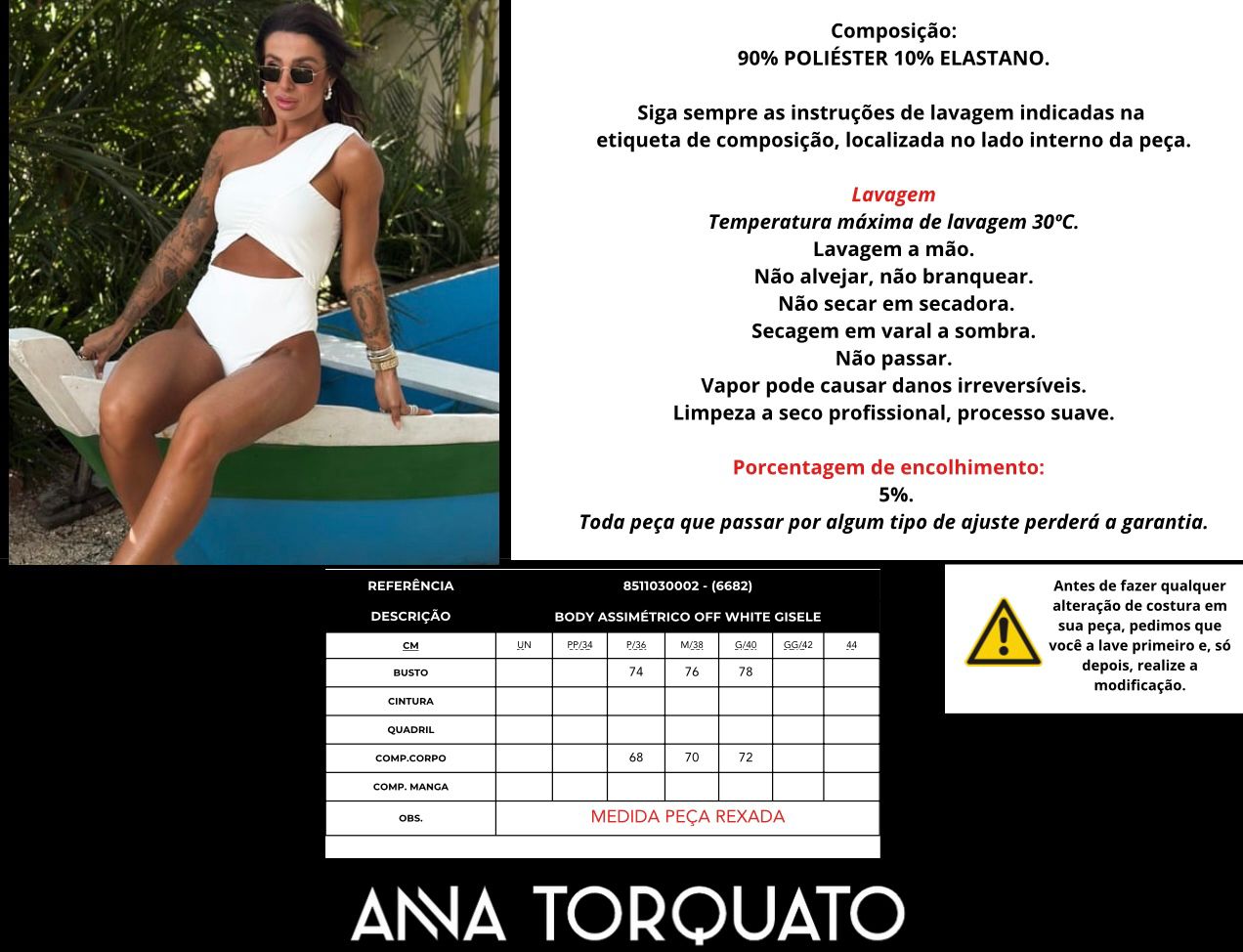 COMPOSIÇÃO: 90% Poliester – 10% Elastano