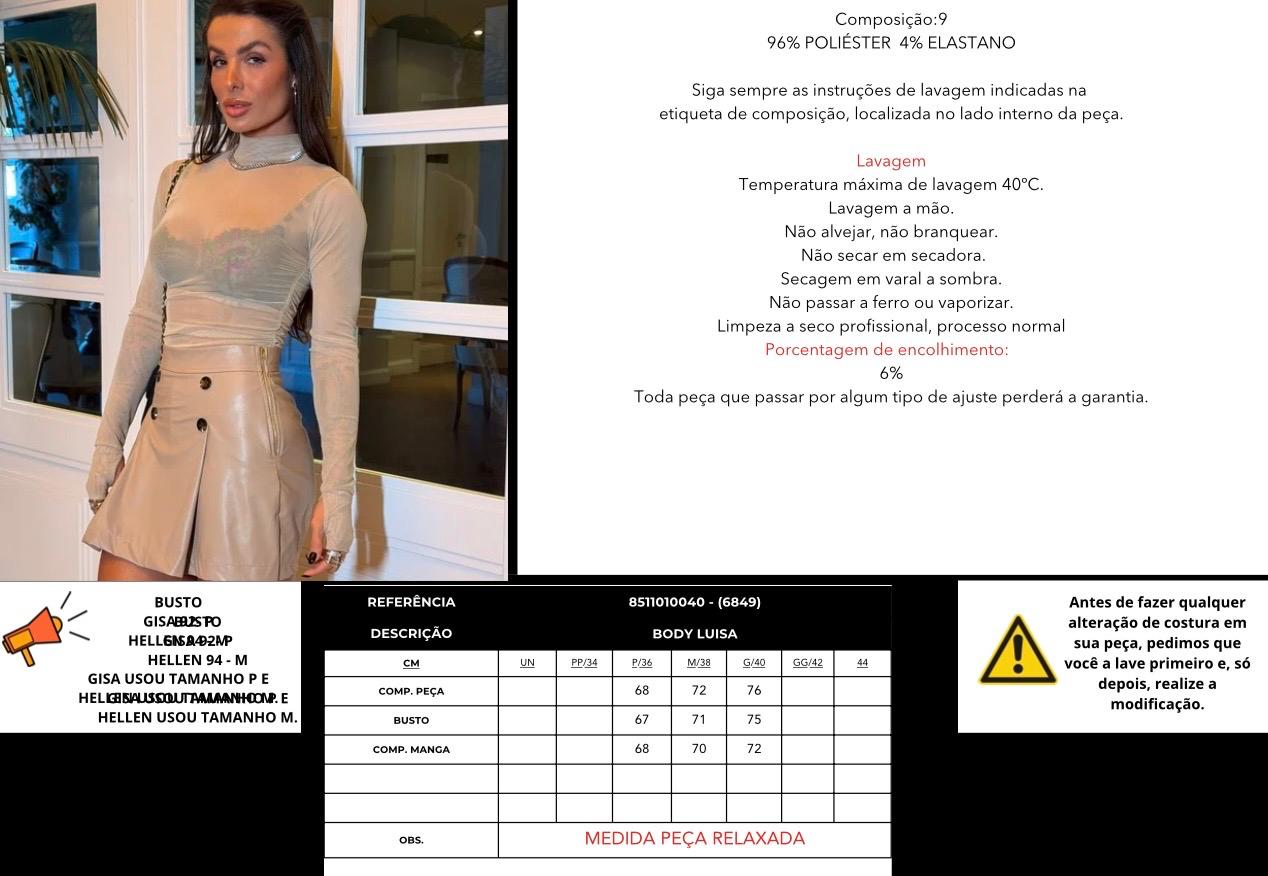COMPOSIÇÃO: 96% Poliester – 04% Elastano