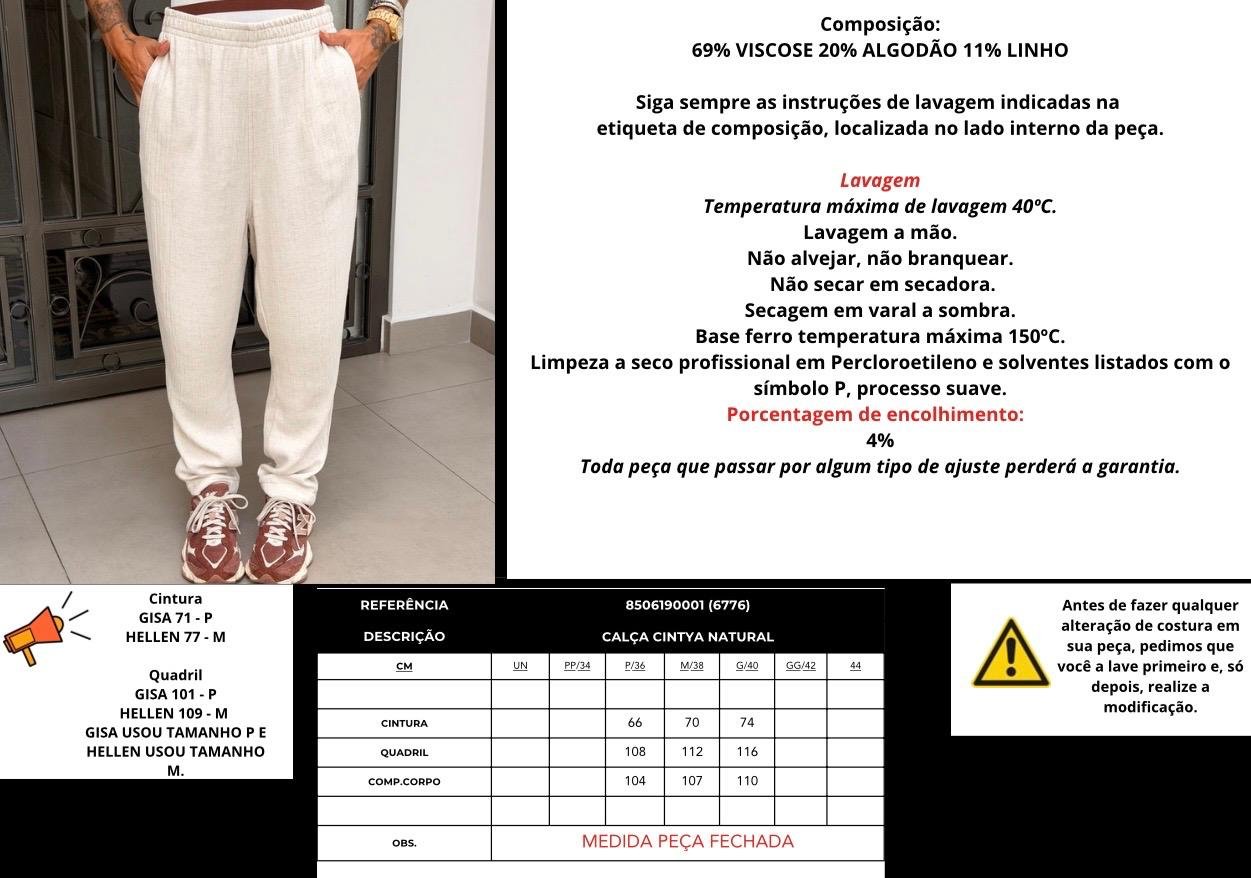 COMPOSIÇÃO: 69% Viscose – 20% Algodão – 11% Linho
