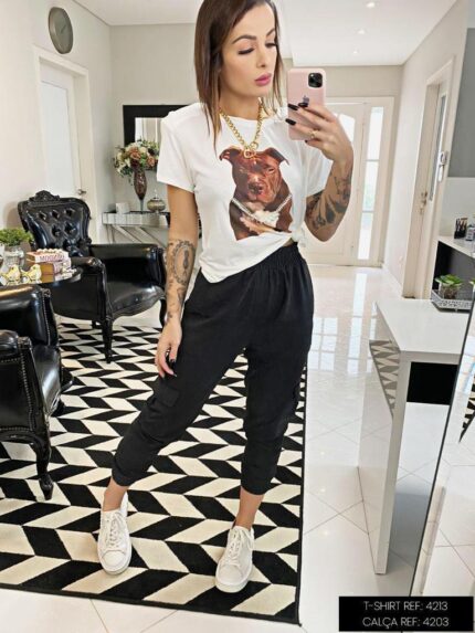 Calça jogger tecido onça