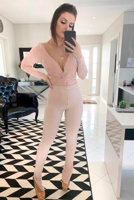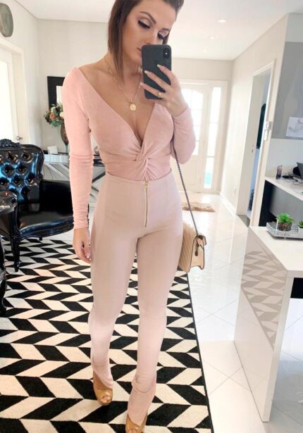 Calça em suede rosa