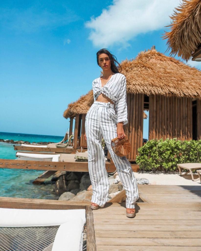 Calça pantalona linho listrado