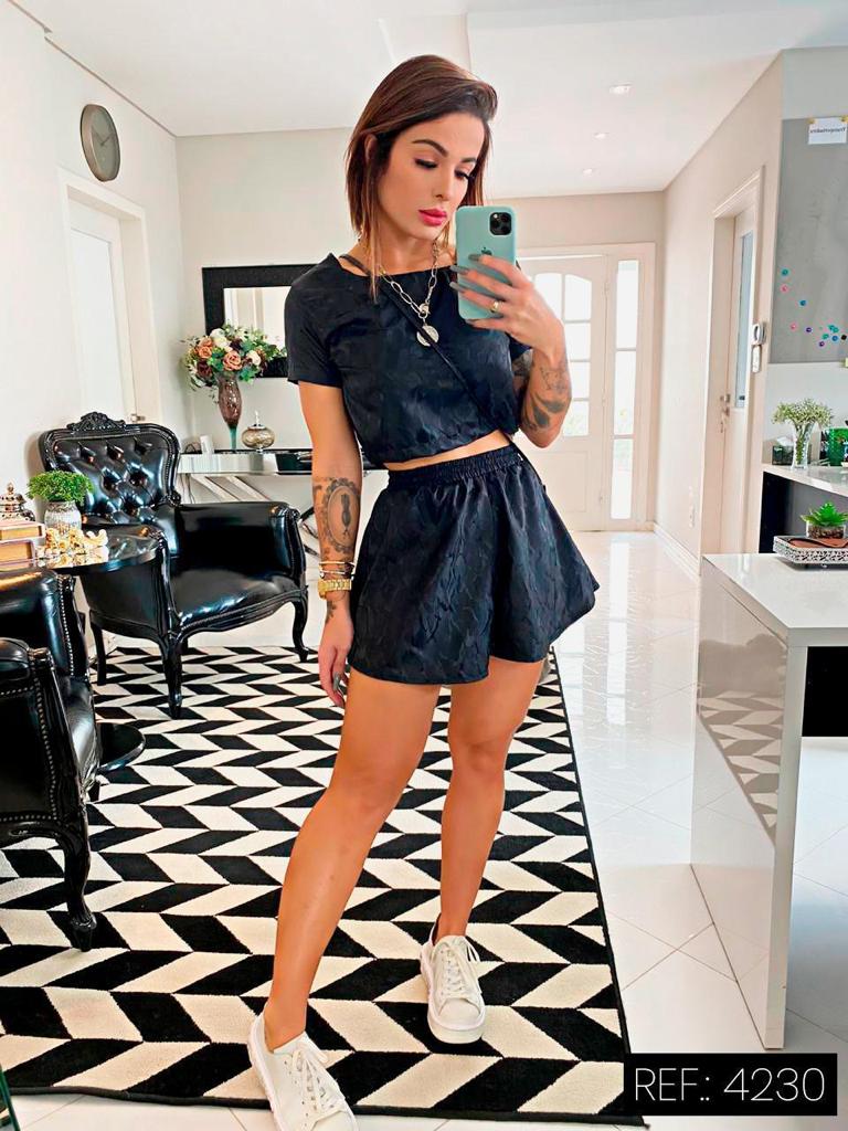 Categorias: Conjunto Shorts - Shorts Saia, CONJUNTOS, ESCOLHA POR COR, PRETO - PRETO COM BRILHO, PROMOÇÃO PRIMAVERA-VERÃO