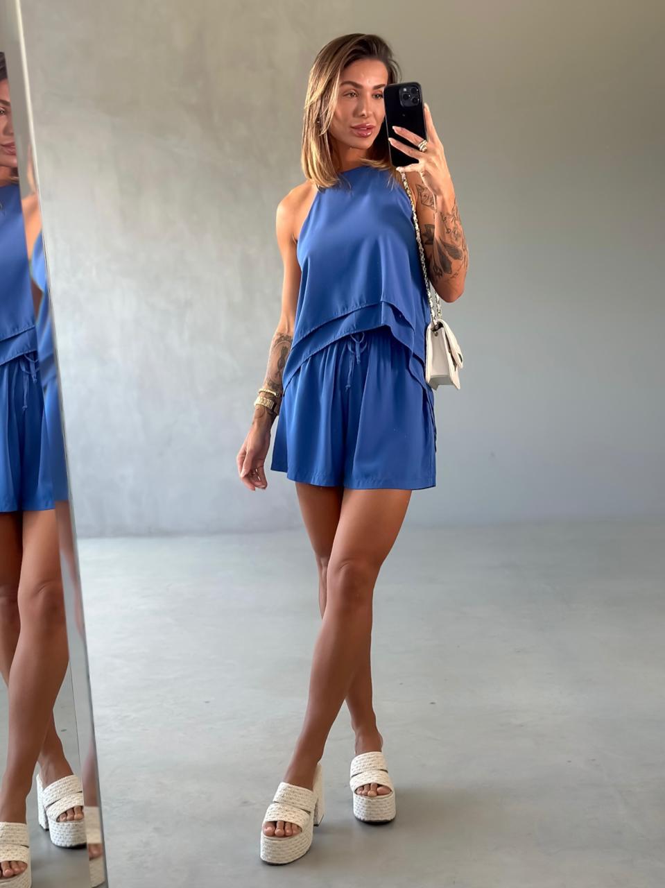 Categorias: AZUL, Conjunto Shorts - Shorts Saia, CONJUNTOS, ESCOLHA POR COR, PROMOÇÃO PRIMAVERA-VERÃO