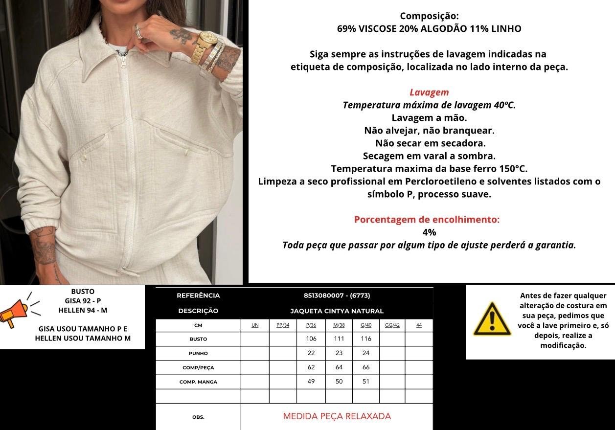 COMPOSIÇÃO: 69% Viscose – 20% Algodão – 11% Linho