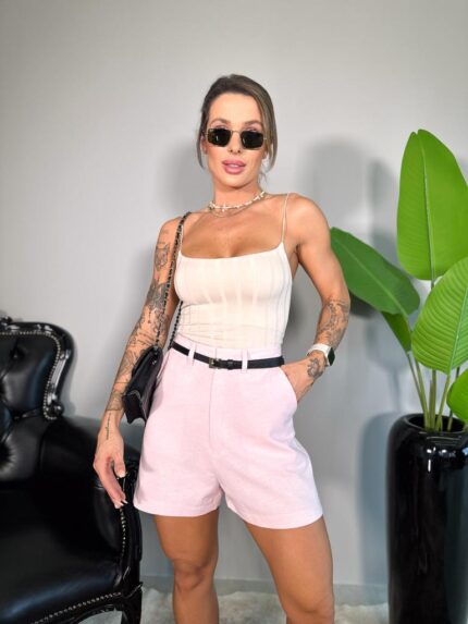 Shorts alfaiataria Rebeca rosa